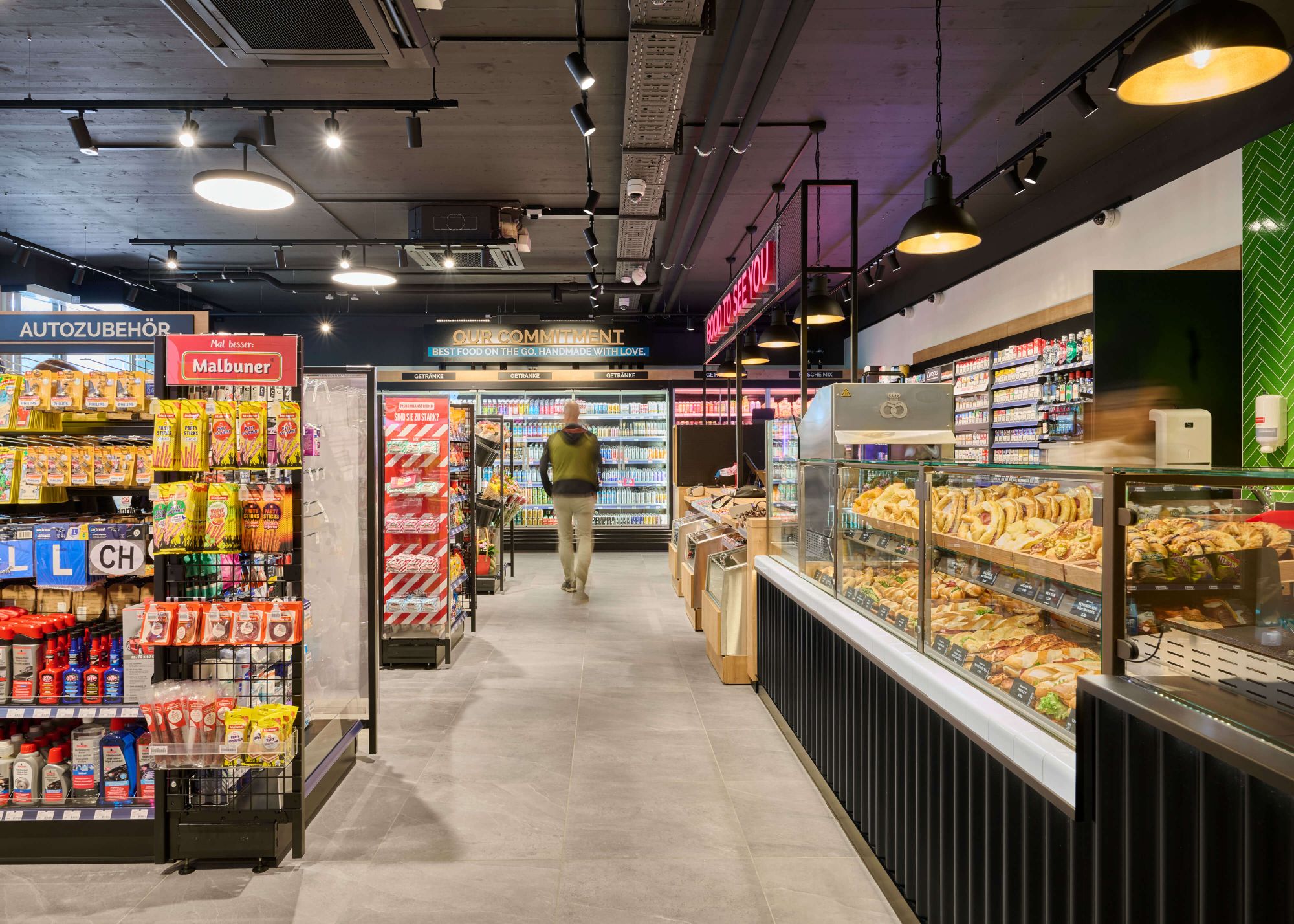 Der neue avec Store ist während sieben Tagen in der Woche rund um die Uhr geöffnet und bietet ein breit gefächertes Sortiment, das speziell auf mobile Konsumentinnen und Konsumenten ausgerichtet ist. Ein Highlight ist die neuartige Integration eines begehbaren Getränkekühlers, der eine grosse Auswahl an gekühlten Getränken, darunter auch regionale Biere, bereithält. Zudem erweitert ein Brezelkönig «Clip-in» das Angebot an frischer Verpflegung. Auf eigener Fläche innerhalb des avec Stores werden Brezeln, Sandwichs und Hot Dogs vor Ort frisch zubereitet und schaffen damit eine noch grössere Vielfalt an frischen Snacks für Reisende.