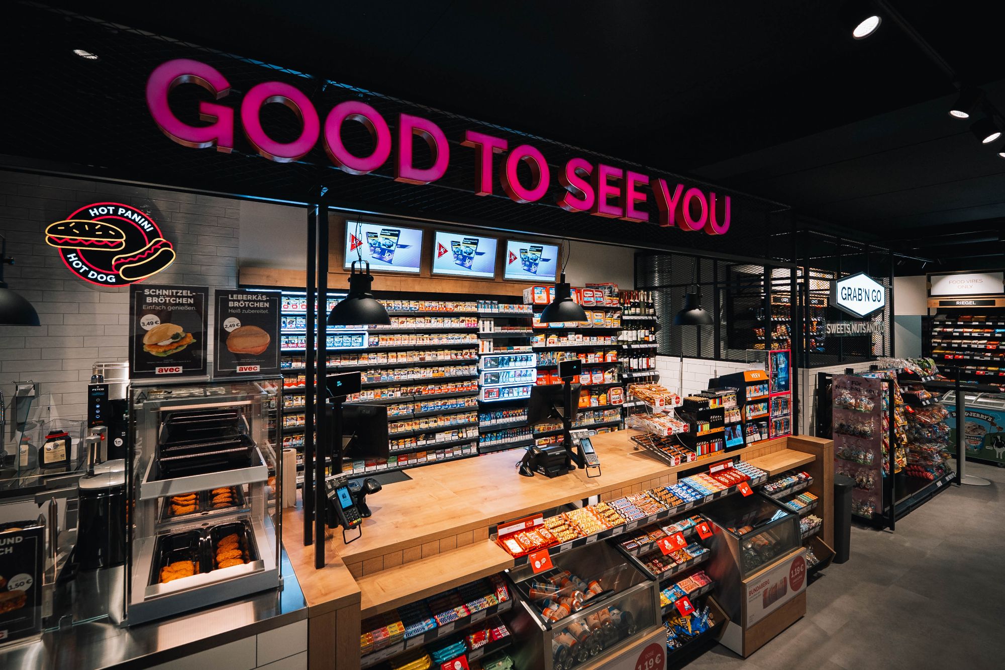 Der neue avec Store ist während sieben Tagen in der Woche geöffnet und bietet ein breit gefächertes Sortiment, das gezielt auf mobile Konsumentinnen und Konsumenten zugeschnitten ist. Im Mittelpunkt steht ein umfangreiches Angebot an frischem Food to-go. Mehrfach täglich frisch vor Ort zubereitet werden warme und kalte Snacks wie Leberkäse, Frikadellen, Schnitzel oder Hot Paninis sowie Salate, Müsli, Obstsalate und Sandwiches. Ergänzt wird das Sortiment durch lokale Spezialitäten wie Franzbrötchen.