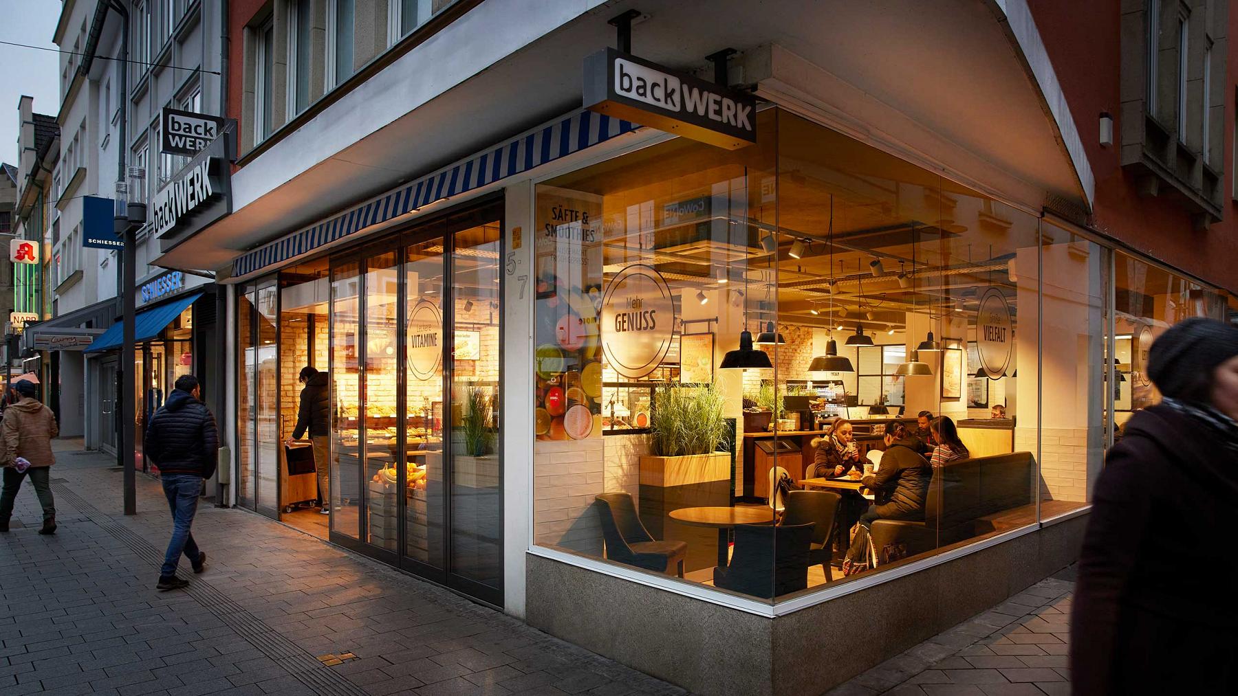 BackWerk is the inventor of the self-service bakery and has since been consistently and successfully developing into a modern bakery gastronomy concept. With its varied snack and catering range, BackWerk is the European market leader in this area. The assortment is consistently adjusted to customers’ regional and seasonal require- ments and produced fresh in BackWerk‘s premises. It comprises sandwiches, hot snacks, pastries and baked items. A growing number of BackWerk stores have a juice bar with fresh smoothies and fruit juices as well as a soup bar. Many independent tests and studies confirm the high quality and extensive variety of the products: the food service bakery has repeatedly been voted best retailer for bread and baked items by its customers and was also nominated as their favourite place «Kundenliebling» in 2018.
