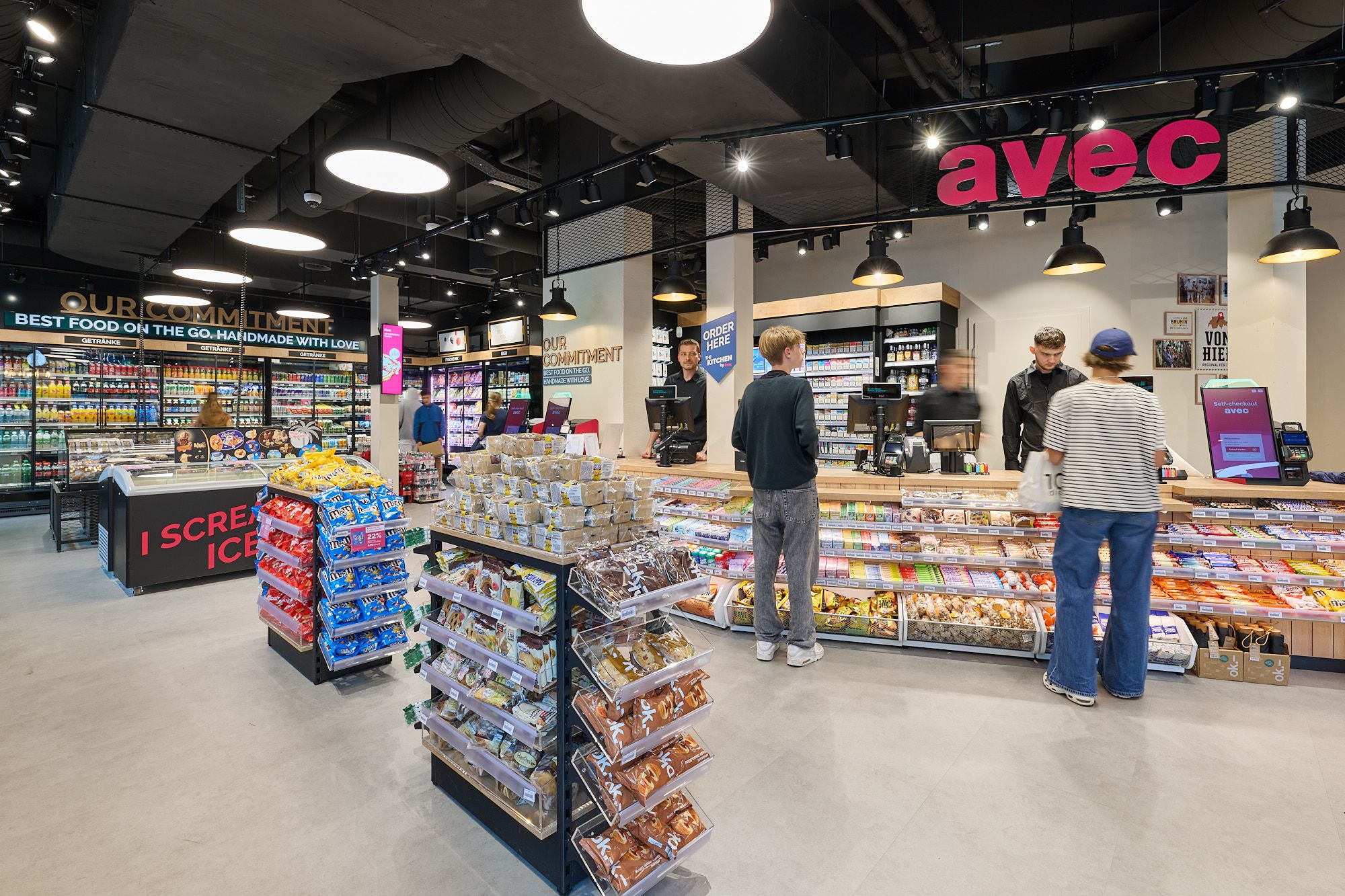 Sur une surface de vente d'environ 160 m², le flagship store avec propose de la nourriture à emporter fraîchement préparée sur place dans le concept de cuisine ouverte « The Kitchen » - la fraîcheur et la qualité sont ainsi visiblement perceptibles pour les clientes et les clients. Le magasin dispose en outre d'une zone moderne de café et de pâtisseries ainsi que d'un assortiment curaté de spécialités régionales et d'articles de consommation courante. Pour un achat rapide et efficace, des bornes en commande libre-service et des caisses en libre-service spécialement conçues sont à disposition.
